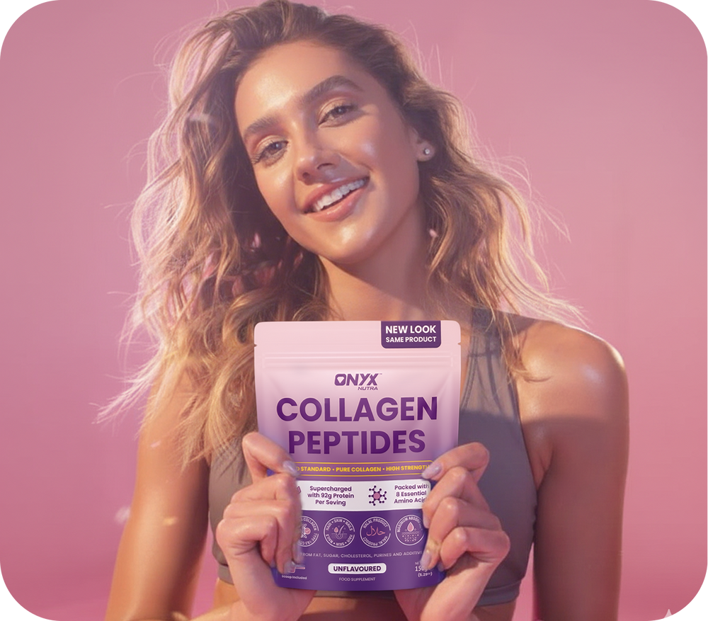 Rejuvenate your body from the inside out with ONYX Nutra™ Collagen Peptides Powder—a premium source of Type 1 & 3 collagen, 100% sourced from bovine and Halal-certified for the highest quality and purity. This fat-free, sugar-free, and additive-free formula supports healthy skin, hair, nails, joints, and muscles with every scoop.