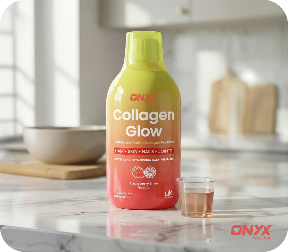 🌸 Collagen Glow is a premium liquid marine collagen supplement delivering highly absorbable collagen peptides, providing 10g of gold grade collagen per serving. Fortified with Biotin, Zinc, Hyaluronic Acid and a full vitamin complex including Vitamins C, D3, B5, B6 and B12 to support skin, hair, nails, joints, and overall vitality. Delicious strawberry & lime flavour. Halal certified. Proudly formulated and bottled in the UK. Not suitable for vegetarians or vegans.